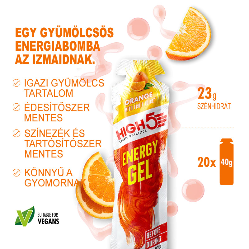 Évek kutatásai után egy csapat elismert sportoló segítségével kifejlesztettük a High5 Energy Gel-t, egy nagyszerű glükóz formulával, az egyszerű és az összetett szénhidrátok tökéletes arányú keverékével, hogy gyorsan és probléma mentesen pótolja az energiát.